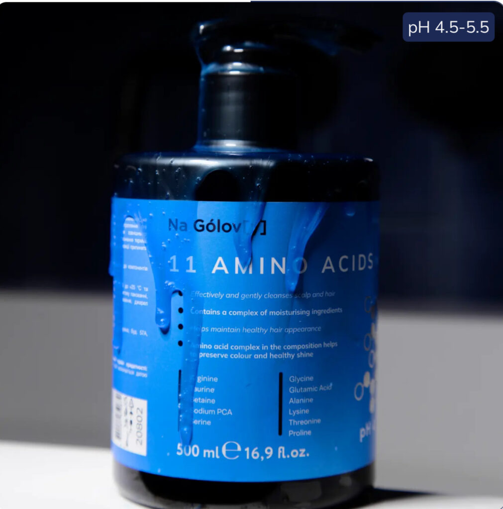 Sulfate-free hair shampoo Na Golov[y] – має зволожуючи, протизапальні, заспокійливі, відновлювальні, помʼякшувальні та відлущувальні властивості. Зволожує та зберігає колір по всій довжині, зменьшує ламкість та надає блиск, не обтяжує прокореневий обʼєм. Дуже гарно піниться і не містить сульфатів – ідеальний продукт після всіх модифікацій та хімічної завивки і при сухій, чутливій шкірі голови.